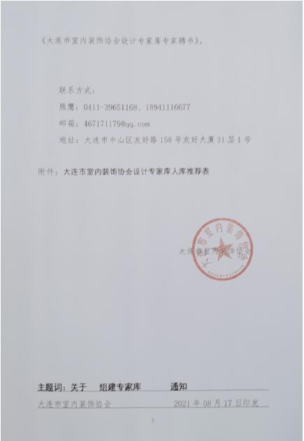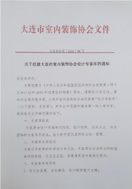 • 关于组建大连市室内装饰协会设计专家库的通知