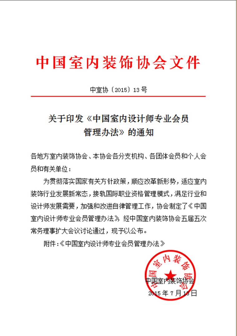 • 关于印发《中国室内设计师专业会员管理办法》的通知